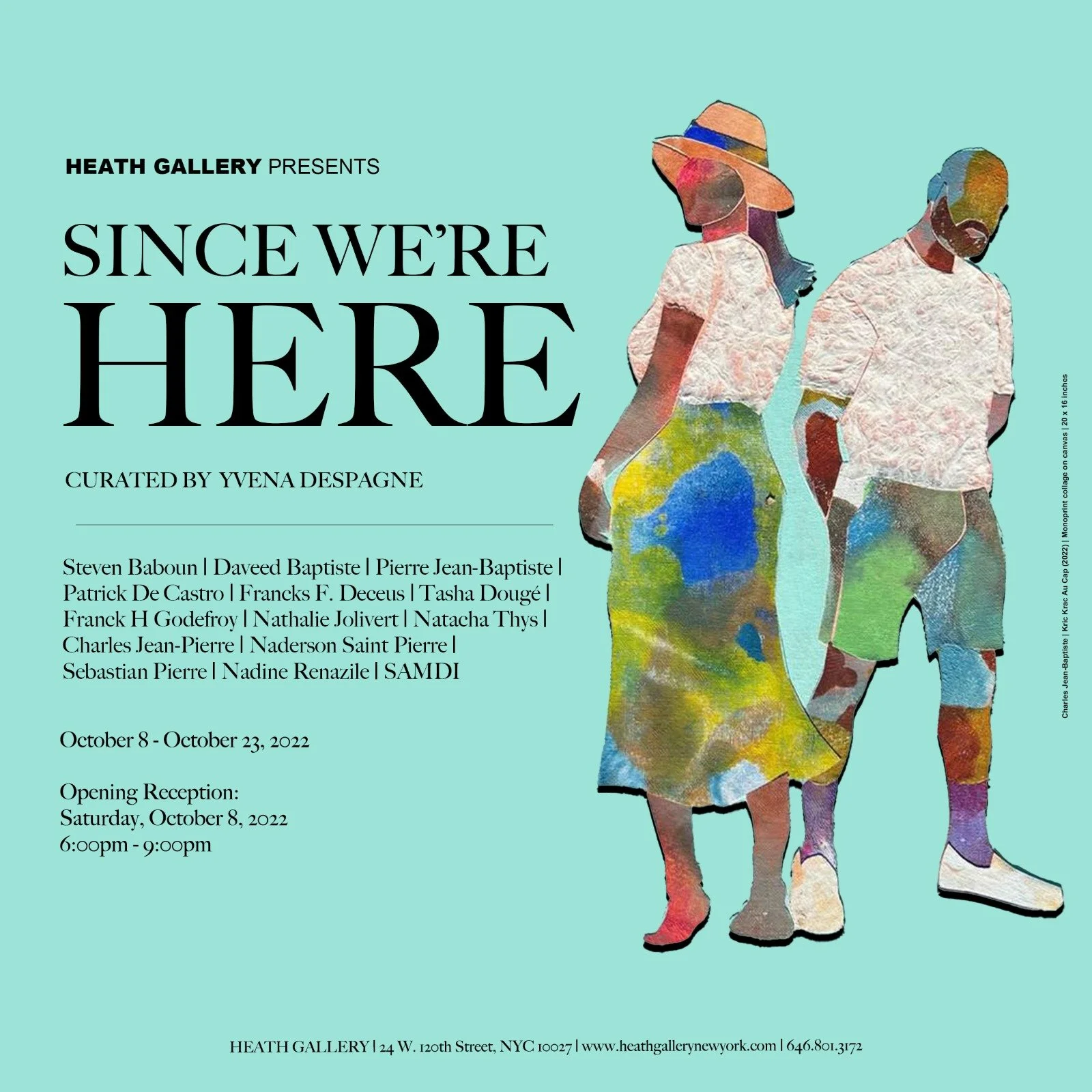 Since We're Here curator, Yvena Despagne, is based in New York City and deeply engaged in intercultural dialogue and collaboration. This is Yvena’s first curation at Heath Gallery. We're thrilled!